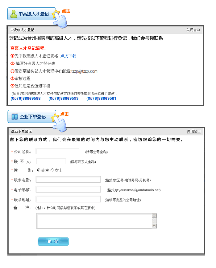 高级人才登记与企业下单: