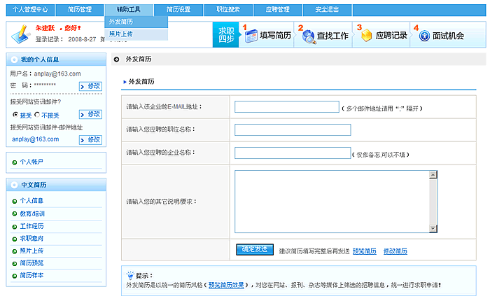 外发简历: